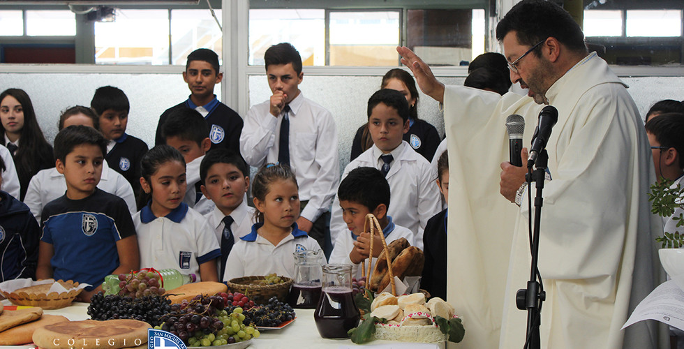El día Jueves Santo, y en presencia del Equipo directivo, profesores y alumnos, nuestro Capellán, el Padre Juan Pinto dio la bendición al Pan y el Vino,(Representado para los alumnos en pan y uva) tal como lo hizo nuestro Señor Jesús en la Ultima Cena, y mandó a sus discípulos a hacer lo mismo en conmemoración suya, y así, desde entonces hasta nuestros día. Los alumnos cada uno en sus salas tuvieron un tiempo de compartir y también para reflexionar sobre como se vive semana santa en sus hogares. Más tarde todos los funcionarios de nuestro colegio participaron de una ceremonia donde compartieron fraternalmente sus deseos para Semana Santa.