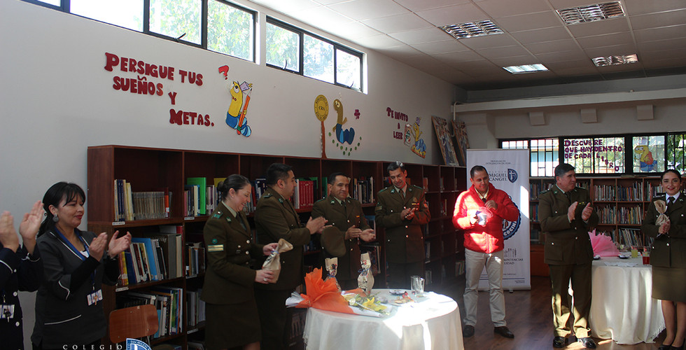 El Miércoles 27 de Abril vivimos un nuevo aniversario de una de las instituciones mas respetadas por los chilenos, como lo es Carabineros de Chile, con la presencia de diversas autoridades de la institución mas toda la comunidad educativa san miguelina, se realizó un significativo acto donde se presentaron bailes y poesías, porteriormente los carabineros visitaron a varios cursos en sus salas donde pudieron conversar más personalmente de como los alumnos perciben la ayuda y resguardo que genera carabineros de chile. Para finalizar nuestra directora entrego unos presentes y agradeció una vez más toda la ayuda que prestan nuestros carabineros a todas las actividades organizadas por nuestro colegio.