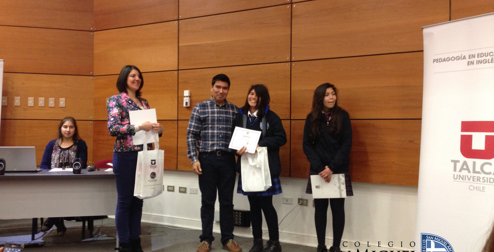 La carrera de pedagogía en inglés de la Universidad de Talca, celebró su segundo aniversario durante la semana del 29 de agosto al 02 de septiembre. Debido a este acontecimiento, organizó diversas actividades que involucraron la participación de distintos colegios de la ciudad y la provincia. La más relevante de ellas, consistió en un concurso de redacción y lectura en inglés titulado Teenager stories at school. En este concurso, se invitó a los estudiantes de enseñanza media a redactar una historia breve, real o ficticia, que tuviese relación directa con su vida escolar en 100 a 150 palabras. De nuestro colegio participaron los estudiantes: Javiera Gonzalez y Emilia Fuentealba de 1º medio, Jorge Vargas y Mathias Cerda de 2º medio B, y Diana Alfaro de 3ºB. Entre todos los colegios que participaron, se seleccionaron las 5 mejores historias, entre ellas la de Emilia Fuentealba, para ser leídas en voz alta frente a un jurado de docentes de la Universidad el pasado viernes 2 del mes en curso. Debido al gran desplante, fluidez y pronunciación, Emilia logró obtener el primer lugar del concurso, siendo un gran orgullo para nuestro colegio y en especial para el departamento de inglés. Reiteramos las felicitaciones a todos los estudiantes que se motivaron a participar de esta actividad que sin duda es una experiencia enriquecedora y una muestra de las habilidades y el potencial que poseen.