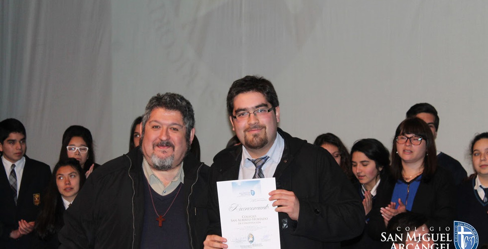 El Teatro Municipal de nuestra ciudad se convirtió en el lugar idóneo para albergar a ocho colegio de la región que se reunieron a dialogar y reflexionar en torno a la importancia social del mensaje doctrinal que el santo padre nos entrega. El V Congreso de la Doctrina Social de la Iglesia constituye un trabajo mancomunado del Departamento Pastoral de nuestro colegio, quienes junto al Obispado de nuestra ciudad, invitan a los jóvenes de las instituciones educativas de la región a estudiar algunos texto doctrinales. Este año el trabajo se centró en las obras de misericordia compiladas en el Misericordie Vultus. Ha sido una larga historia de más de cinco años, desde la fría mañana del año 2012 cuando la casa de ejercicios Chacahuín abrió sus puertas para cobijar a un grupo de colegios que se aventuraban a reflexionar en torno al mensaje de la iglesia. Una tarea que se ha convertido en una tradición para el Colegio San Miguel Arcángel, que cada año se prepara para recibirlos de la mejor manera. Este año se contó con la presencia del Colegio San José de Parral, el Colegio San Alberto Hurtado de Constitución, el Colegio San José de San Javier, desde Cauquenes nos visitó el Colegio Inmaculada Concepción, Liceo María Auxiliadora y el Liceo Nuestra Señora del Rosario de Linares, y por primera vez contamos con la participación del Colegio Alborada, además de nuestro colegio como anfitrión. La jornada comenzó muy temprano, con una hermosa oración de la hermana María Angélica que se vio engalanada por el coro litúrgico del profesor Edgardo Gutiérrez, luego, nuestra directora Patricia Sotelo extendió un saludo a cada uno de los colegios y dio las gracias al Obispado por brindarnos esta tremenda oportunidad. Las exposiciones estuvieron acompañadas de dramatizaciones que explotaron todo el talento de los estudiantes de los distintos colegios, con muestras plásticas, dramas y comedias llevados desde las obras de misericordia. El colegio Inmaculada Concepción de Cauquenes se llevó el galvano al primer lugar, por una destacada presentación teatral y gran coherencia en la exposición. Nuestro colegio obtuvo un merecido segundo lugar, luego de un arduo trabajo que congregó la dedicación, tiempo, esfuerzo y talento tanto de estudiantes como de docentes. Nuestro Obispo, Monseñor Tomislav Koljatic se mostró muy contento por el hermoso trabajo presentado y dejó invitada a la comunidad a reunirse en torno a un congreso de los talentos musicales, una instancia que aun no ve la luz, pero que está en el anhelo de nuestro obispo. Ya comenzamos a pensar en un nuevo congreso, una nueva reunión, una nueva tarea; pero hoy nos quedamos con vivir las obras de misericordia y hacer de este trabajo un ejemplo para el resto.