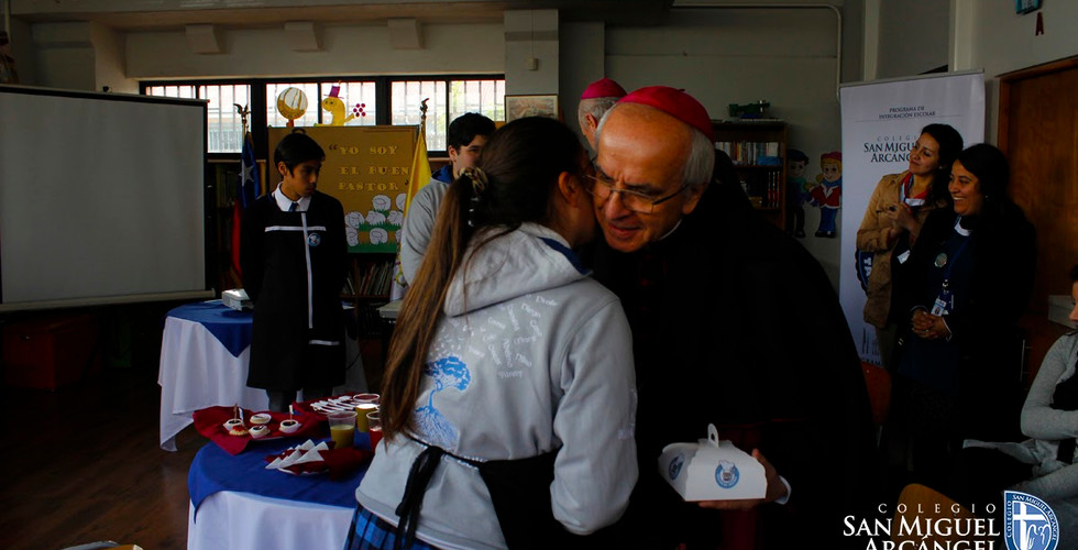 S.E. Monseñor Ivo Scapolo, nuncio apostólico del Vaticano en Chile y representante de la Santa Sede y de Su Santidad el Papa ante el Gobierno de Chile nos acompañó el pasado lunes 17 de octubre junto a nuestro obispo, Monseñor Tomislav Koljatic en una breve visita que le permitió conocer el trabajo que se desarrolla en el Colegio San Miguel Arcángel. Un momento que nos llenó de alegría y que llenó el aire de una espiritualidad especial. Nuestra directora, señora Patricia Sotelo fue la encargada de recibirlo y mostrarle al cariño y hospitalidad con la que recibimos a las visitas. Los niños con sus banderas al aire, le dieron el saludo, para luego disfrutar del arte de la cueca en los pies virtuosos de nuestros estudiantes. Posteriormente compartió en nuestra Biblioteca junto al Departamento de Educación Inclusiva, quienes prepararon una recepción y pudieron compartir el trabajo y las distintas experiencias formadoras que desarrollan. Monseñor Ivo Scapolo se mostró agradecido por la hermosa mañana que le hicieron pasar y nos instó a seguir en la senda del trabajo y la fe.