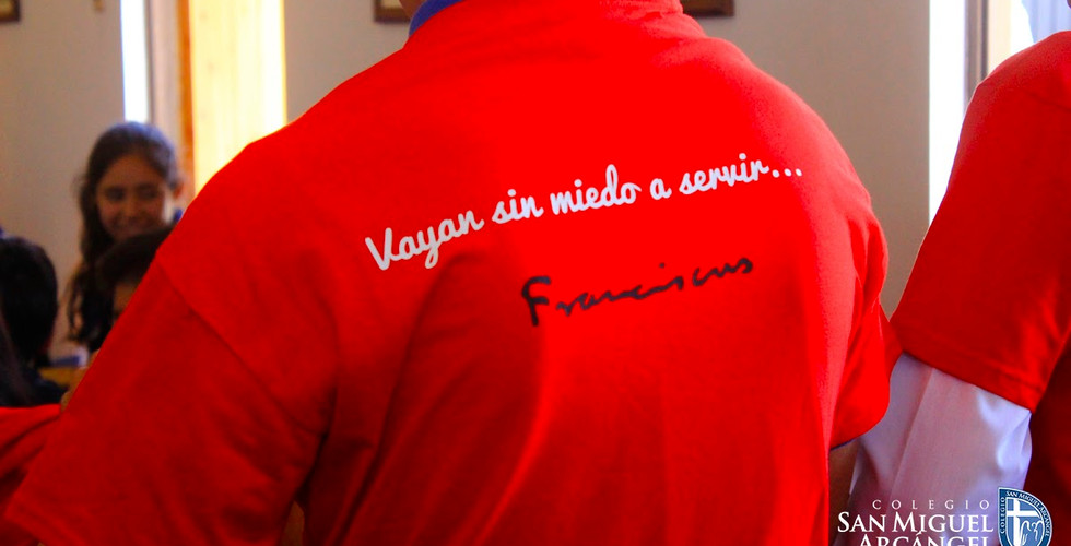 Nuestros estudiantes que conforman la Pastoral Juvenil, junto a su coordinador, don Eduardo Aravena, recibieron de manos de nuestro obispo unas llamativas poleras con una nueva imagen y que los distinguirá entre los otros jóvenes de las distintas comunidades que participarán en el mes de enero.
